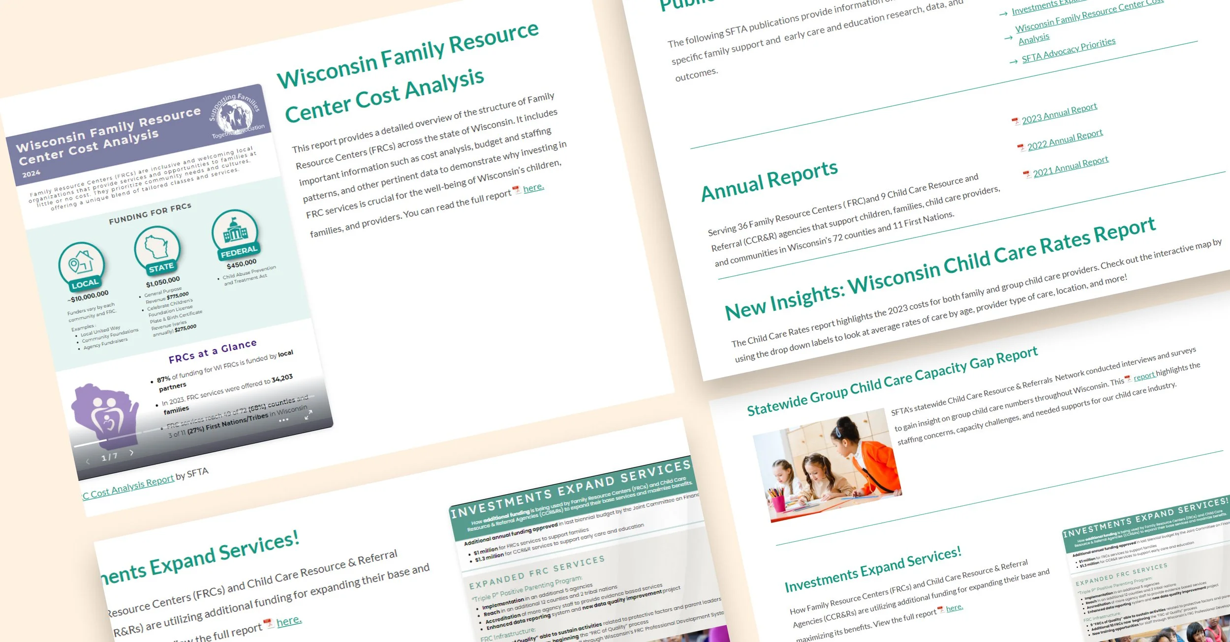 Supporting Families Together Association (SFTA) is a Wisconsin-based non-profit dedicated to offering high-quality resources and training for childcare providers across the state. Their website aims to showcase training opportunities for childcare providers, as well as provide relevant childcare resources and data specific to Wisconsin.