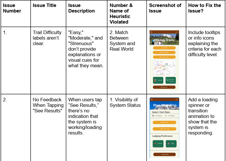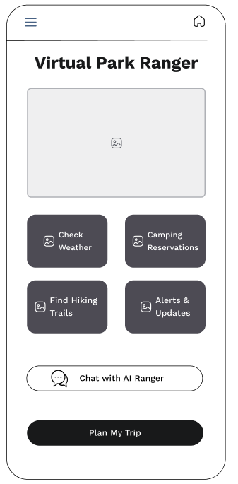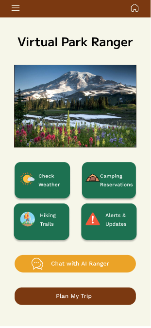 In the end, I narrowed it down to three features directly tied to the research: a Virtual Park Ranger chatbot to help newer users find information, a “What to Expect” Visitor’s Guide to simplify trip planning, and Mobile-Friendly Offline Maps for reliable navigation. These concepts aim to make the park experience clearer, safer, and more engaging.