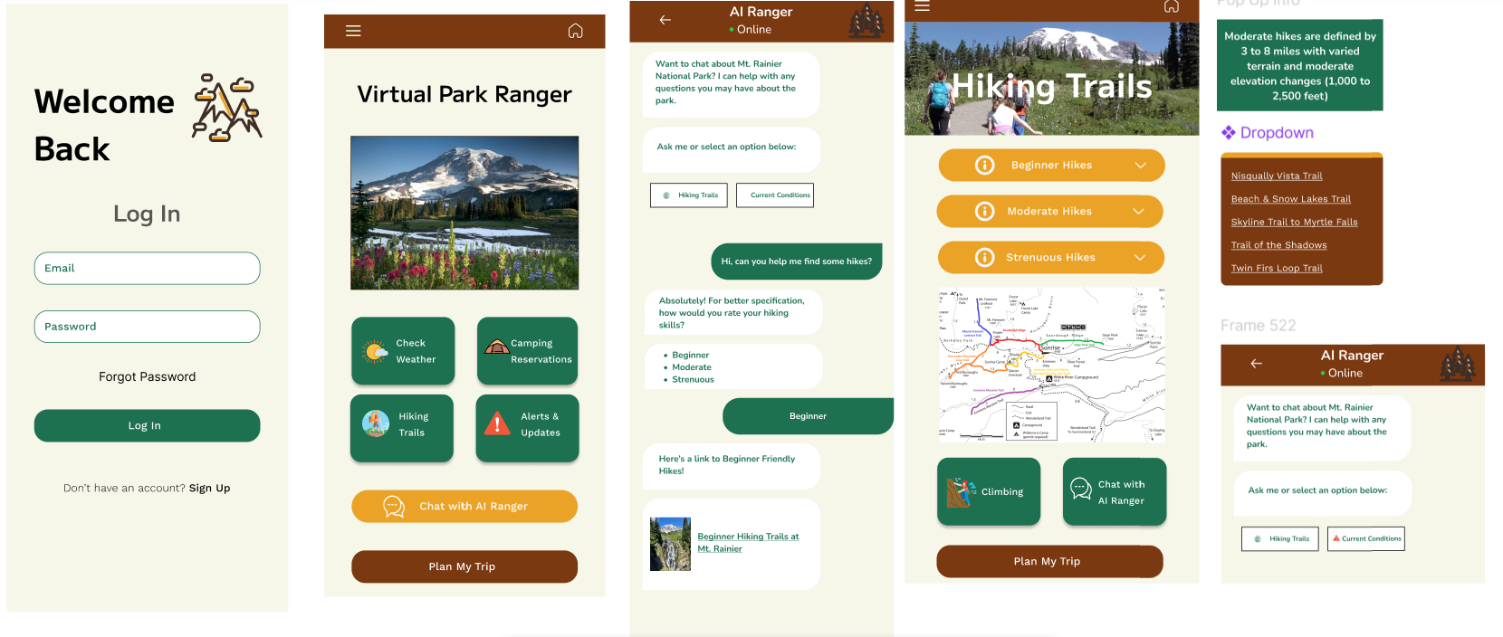 These screenshots show off the final draft of the Virtual Park Ranger App screens, ready to guide the way!